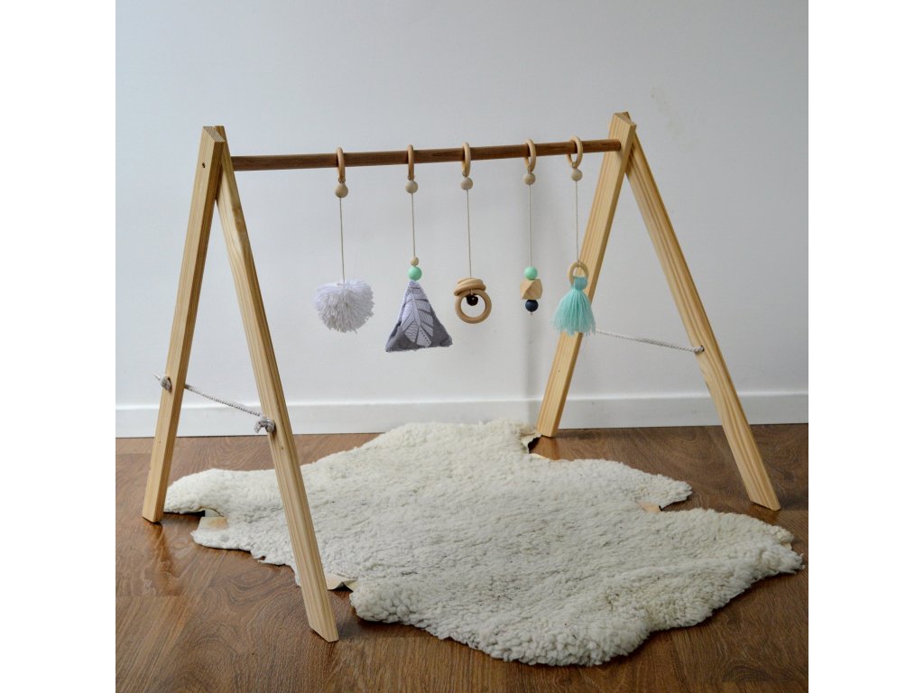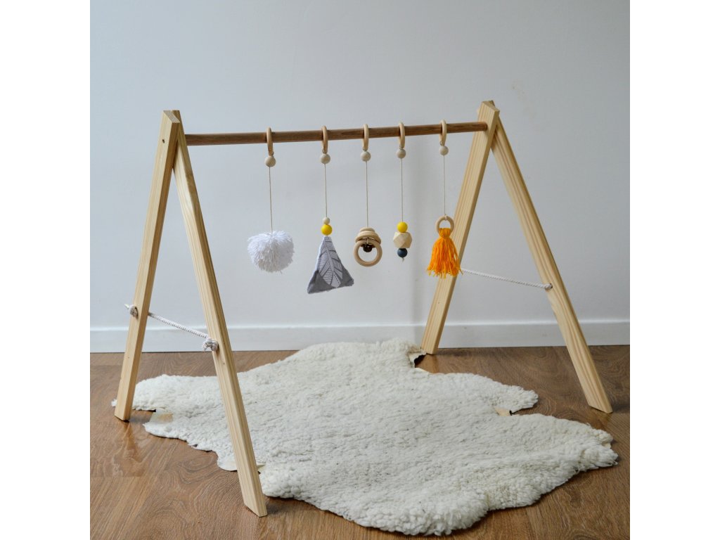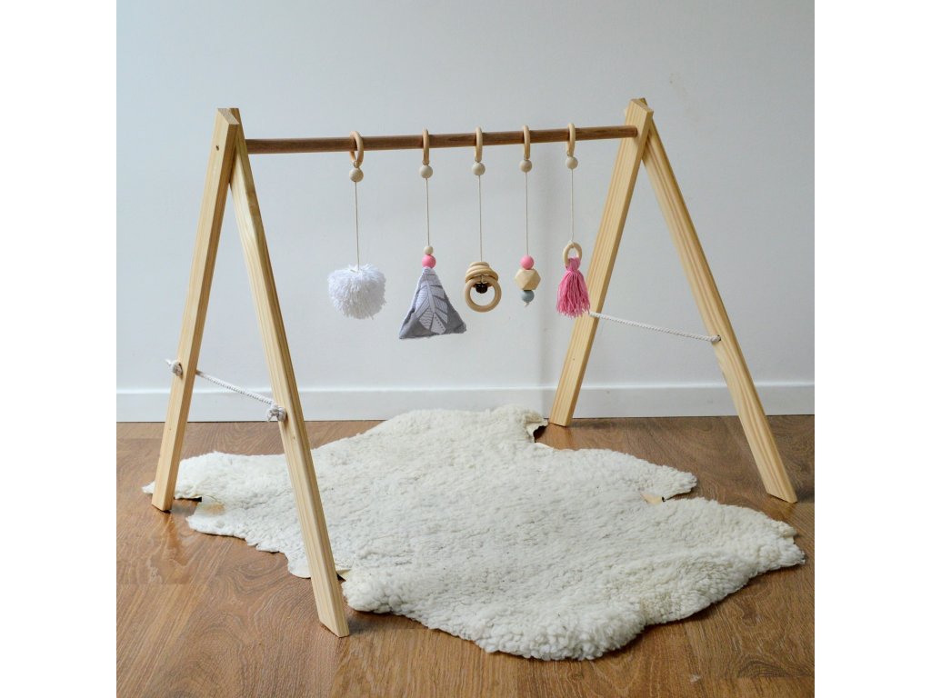 DŘEVĚNÁ HRAZDIČKA S HRACÍ PODLOŽKOU A PODSEDÁKEM VE TVARU LISTUHrazdička je aktivní tělocvična pro ležící miminko. Při hraní děťátko posiluje nožky a ruce, pracuje na jemné motorice a rozvíjí základní smyslové dovednosti.Miminko se přirozeně unaví a často spokojeně usne.V této sadě najdete samotnou dřevěnou hrazdičku, vše na vytvoření 5ti hraček různého tvaru a z rozmanitého materiálu a hotovou hrací podložku s podsedákem. Takže vy i děťátko budete mít o zábavu postaráno.#mamacrafting tipy: Závěsy na hrazdičce doporučujeme průběžně střídat. A až miminko povyroste, můžete hrazdičku využít jako věšák na oblečení nebo skrýš. |