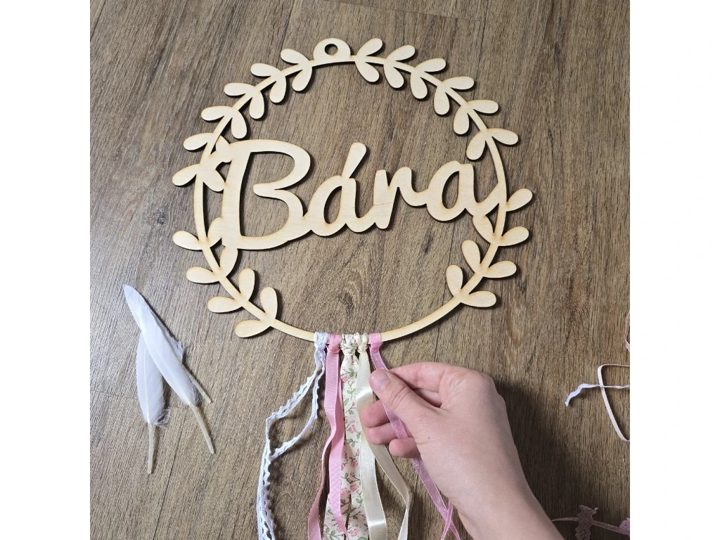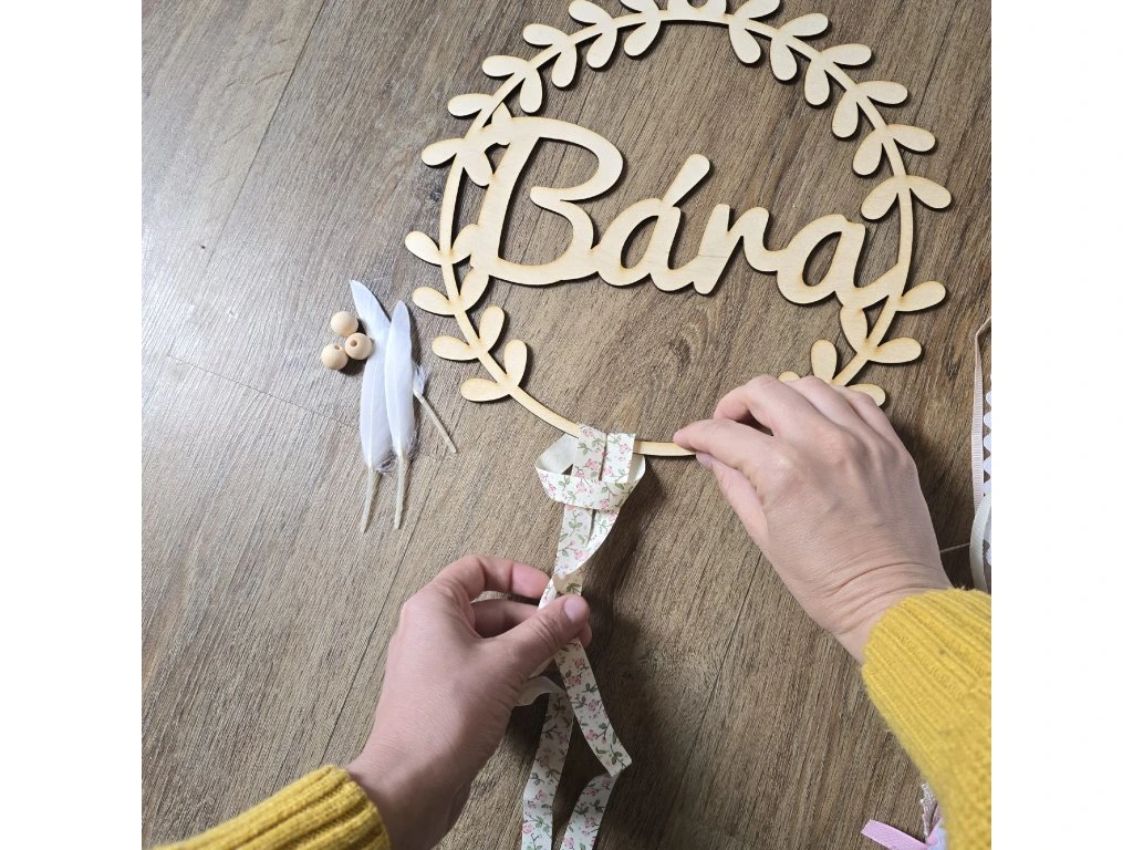 KREATIVNÍ SADA OBSAHUJE:#dřevěný kruh z překližky o průměru 30 cm s vlastním jménem#dřevěné korálky, 20 luxusních stuh, bavlnku, peříčka,#tištěný manuálOBJEDNÁNÍ:#uveďte jméno dítěte do poznámky ve třetím kroku objednání# jméno uveďte tak, jak ho chcete mít na lapači uvedené (např. Bára, Barča, Barunka) # doporučujeme maximálně 7 písmen (čím více písmen, tím menší velikost jména) # Odeslání do 5ti pracovních dnů |